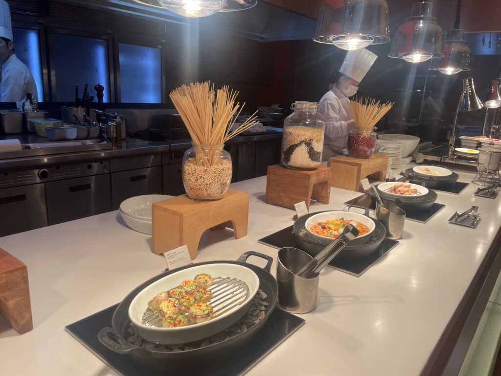 韓国料理も、スープの種類や具が選べて、目の前で調理してくれるタイプの麺類が豊富にあって、辛くないスープも選べたので子どもも問題なく食べることができました。
