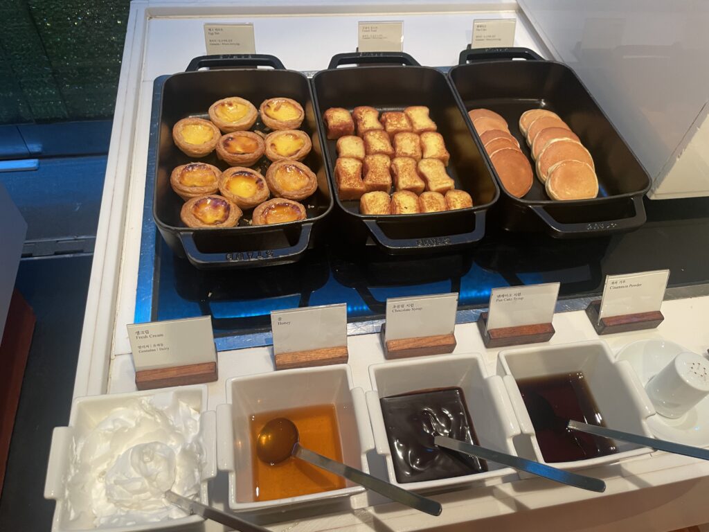 朝ご飯のビュッフェは、韓国料理だけでなく、西洋料理やエスニック料理も豊富にあって、どれも美味しくて、目移りして食べきれないほどでした。