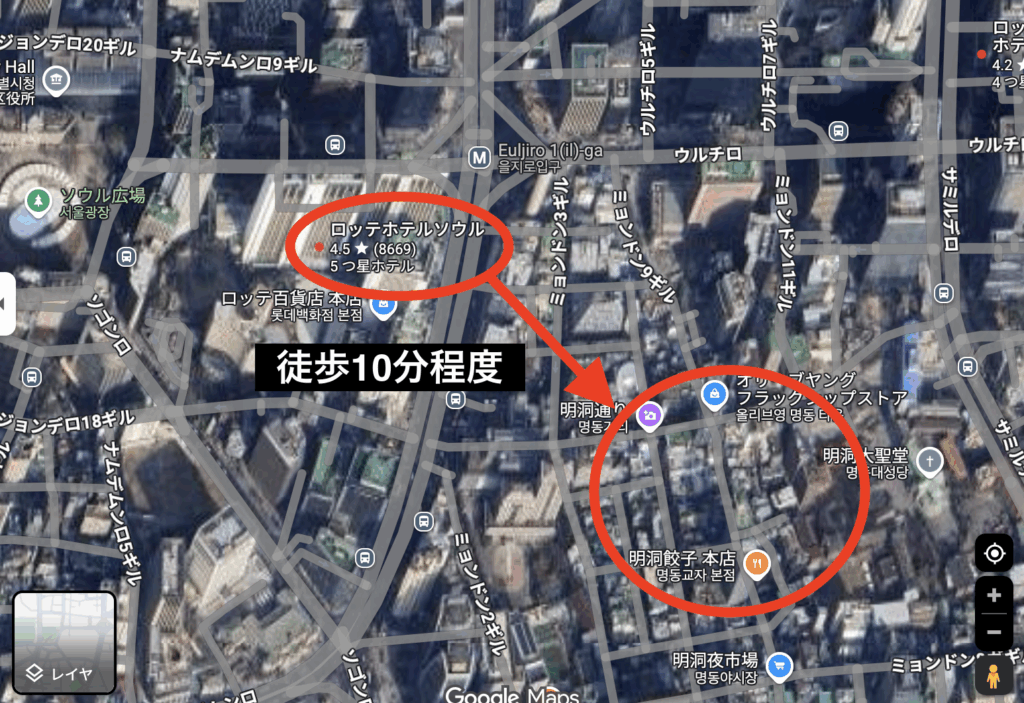 ロッテホテルの最大の魅力の一つは、明洞まで徒歩数分の距離というところでしょう。
