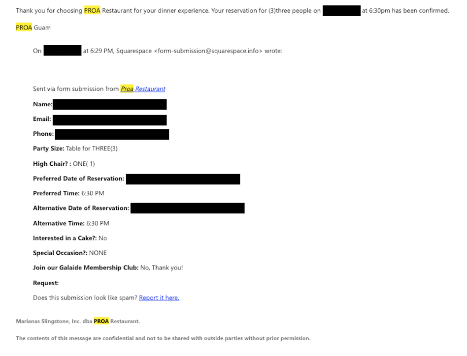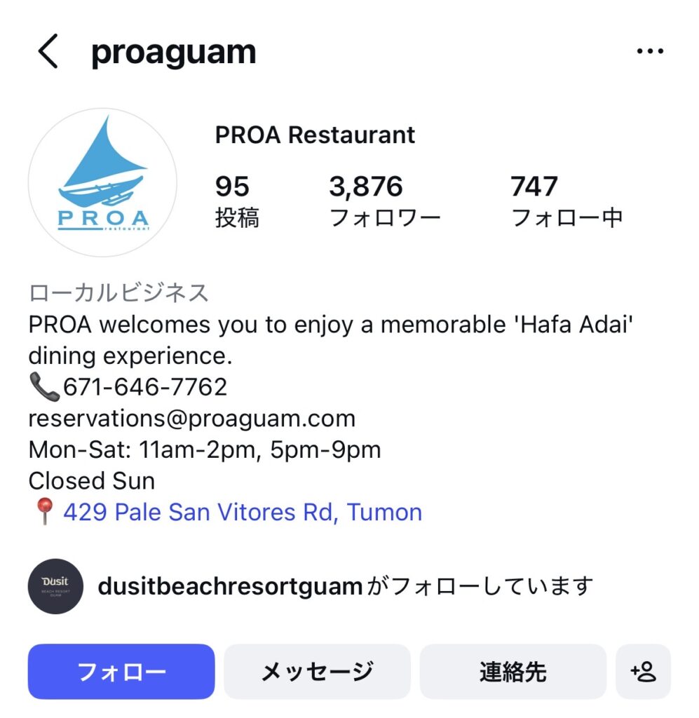 予約メールアドレス:reservations@proaguam.com (Proaの公式Instagram @proaguam に掲載されている情報です)